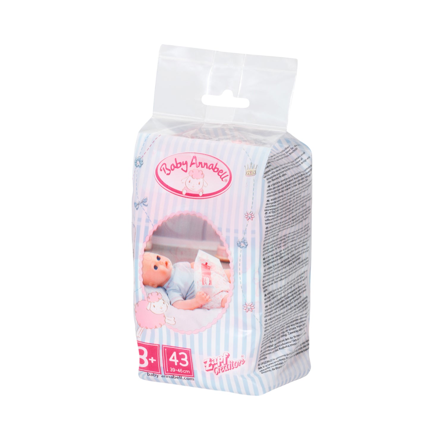 Un scutec umed nu este niciodata potrivit. Din fericire, exista Baby Annabell – Scutece, 5 buc de la Zapf Creation ce contine un pachet de cinci scutece. Scutecele adorabile sunt decorate cu motive de oite dragute. Deschideti benzile adezive, scoateti scutecul vechi, puneti unul nou si este gata sa joace din nou.