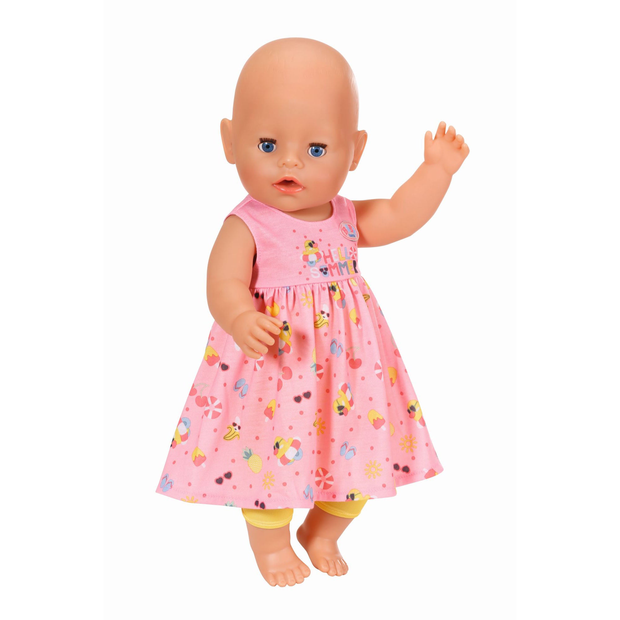 Pentru lunile mai calde, BABY born are doua rochii vaporoase– o rochie inflorata cu maneci cu volanase pentru primavara si o rochie roz cu imprimeu dragut pentru vara.