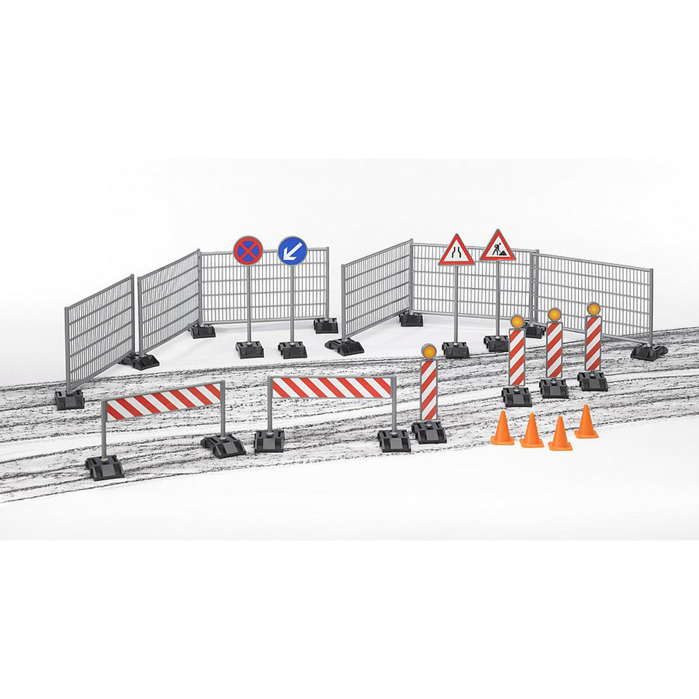 Siguranta muncitorilor si a trecatorilor are prioritate maxima pe perioada santierului. In special atunci cand sunt utilizate masinari mari, marcarea zonei cu banda este adesea o procedura indispensabila. Marcarea zonei santierului este, prin urmare, cheia pentru vehiculele si figurinele de constructie din gama BRUDER. Setul de constructie este compatibil cu bworld si are -un sistem simplu de plug-in care este usor de utilizat si poate fi extins dupa necesitati. Varsta recomandata 3 ani+.