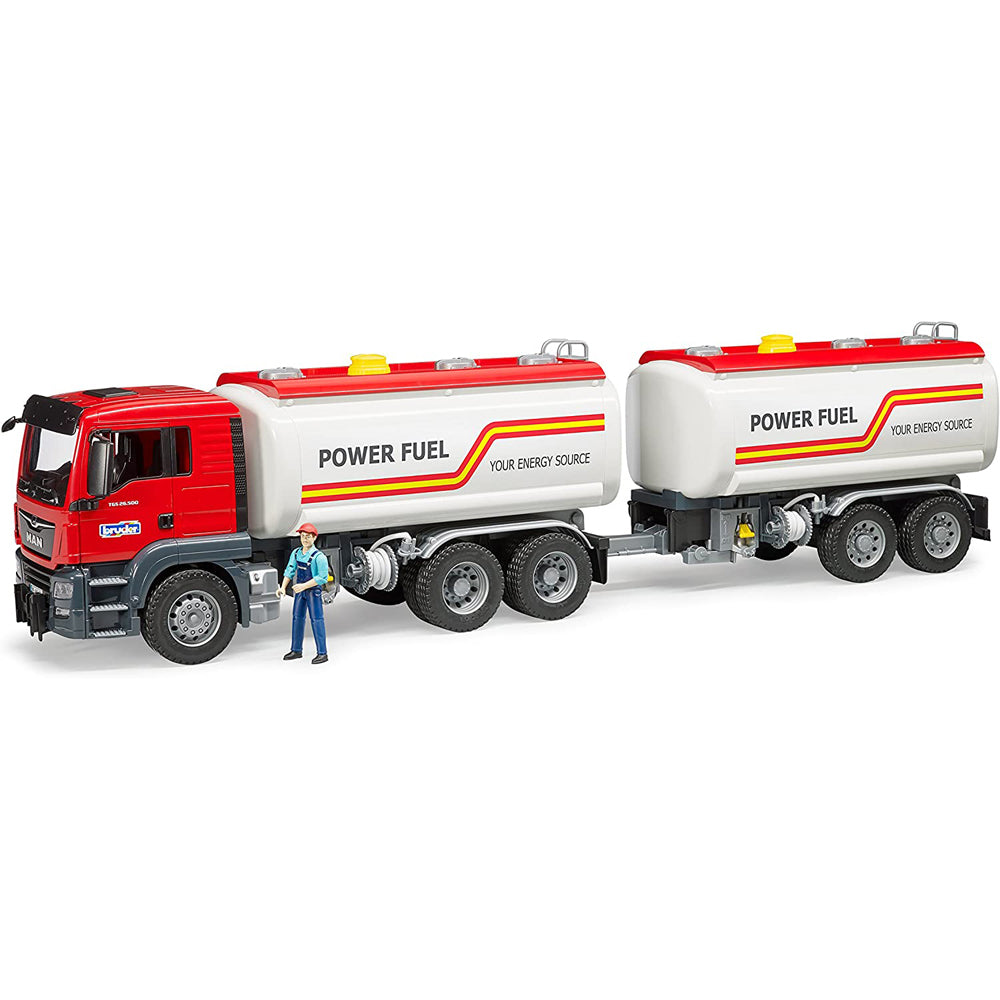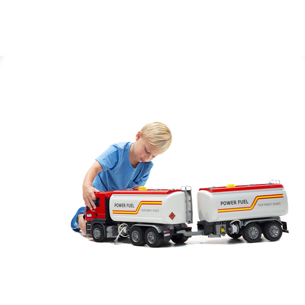 BRUDER ofera o remorca cisterna (articolul nr. BR03925) ca optiune suplimentara ideala ce se potriveste perfect cu acest camion cisterna atragator si formeaza o combinatie de vehicule cu o lungime de aproape un metru. BRUDER ofera, de asemenea, numeroase figurine de jucarie bworld. Acestea pot fi pozitionate in cabina sau pot fi urcate pe vehicul pe scara, pentru a inspecta rezervorul din partea de sus.
